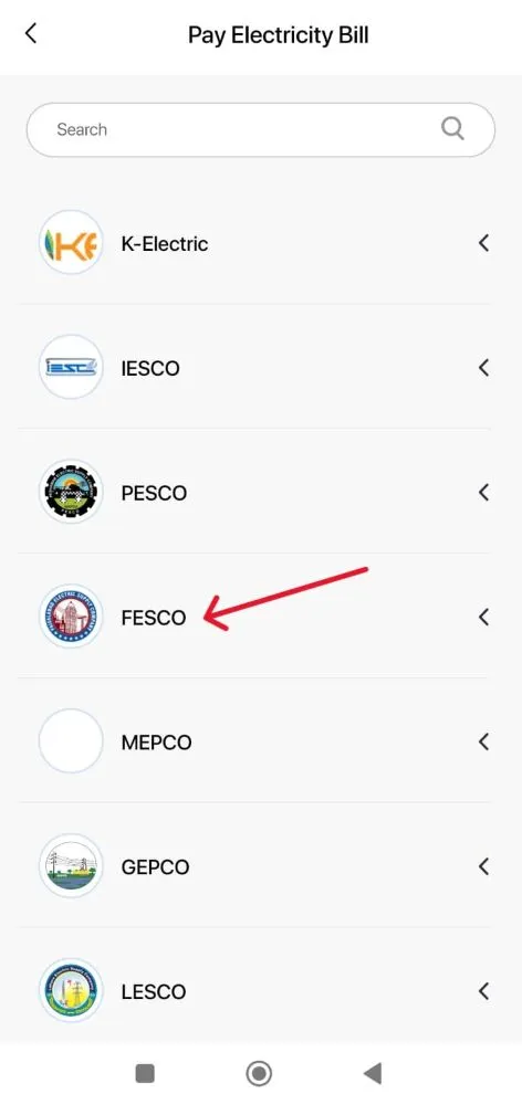 - Now go to “Utility Bills” section and choose “FESCO”.