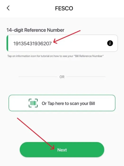 - Enter your 14 digit reference number inside the app and get your bill amount.